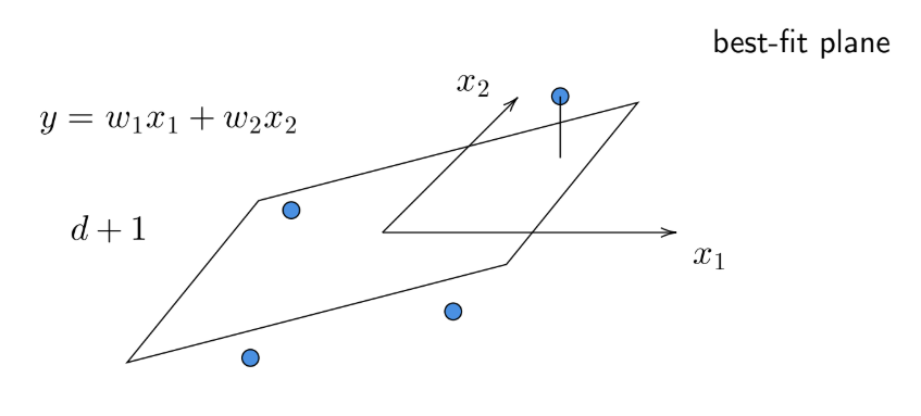 For a dataset in \(\mathbb{R}^d\), the best-fit hyperplane describing the linear relationship lies in \(\mathbb{R}^{d+1}\).